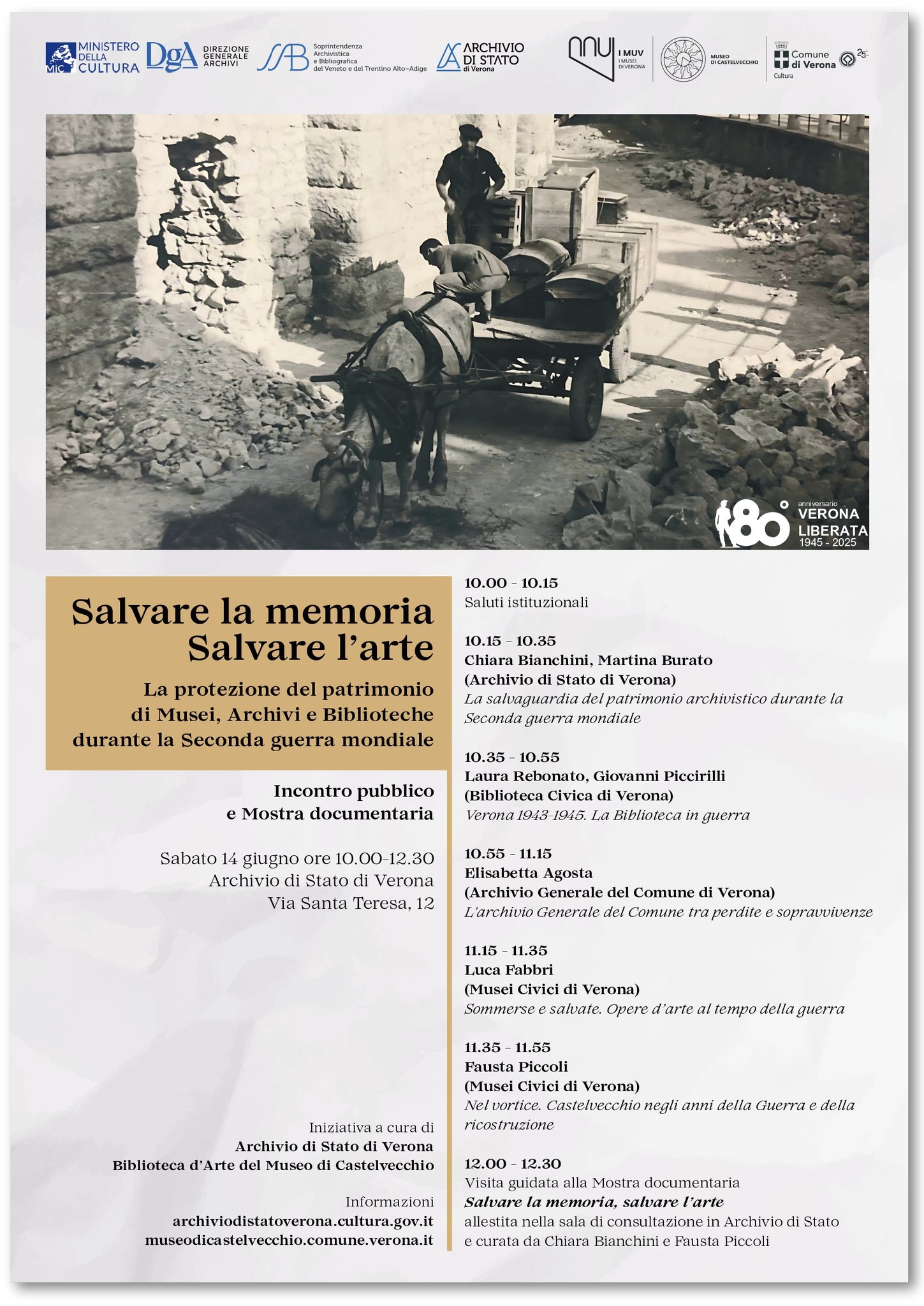 Giornata di studio Salvare la memoria Salvare l’arte. La protezione del patrimonio di Musei, Archivi e Biblioteche durante la Seconda guerra mondiale